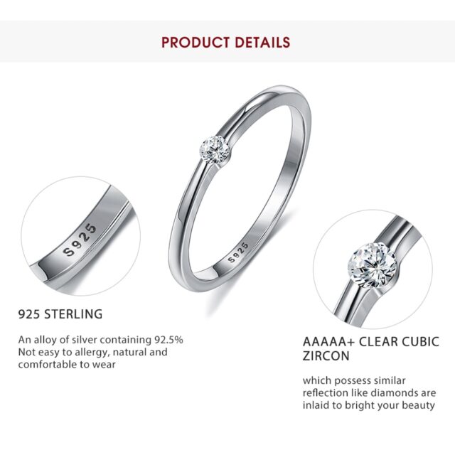 SILVERHOO 925 Sterling Silver Rings for Women Cute Zircon Round Geometric 925 Silver Wedding Fine Jewelry Minimalist Gift